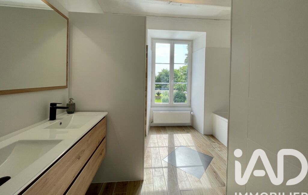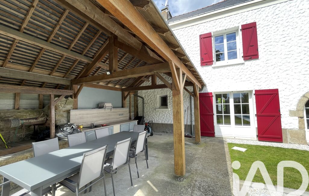 iad France - Marietta Pallaro vous propose: Coup de coeur - Dans charmant petit bourg à 8 mn de Savenay et de l'axe Vannes Nantes magnifique maison de Maître offrant de très beaux et vastes volumes de plus de 200 m2 avec un grand atelier de 60 m2 attenant, un locatif de type 3 de 60 m2 pour une surface totale de 350 m2 sur un jardin paysager avec pelouse et arbres centenaires. Si vous aimez le charme de l'ancien, cette demeure parfaitement rénovée est faite pour vous. Elle se décrit comme suit : une vaste entrée avec poutraisons apparentes donne accès directement à l'espace jardin sur l'arrière ou à la cuisine aménagée et équipée avec tout le confort dont vous aurez besoin, un grand séjour lumineux avec cheminée continuera de vous séduire, une grande suite parentale avec salle d'eau et grand dressing avec un accès direct à la terrasse et au jardin sans vis à vis, une buanderie ainsi qu'un grand atelier de 60 m2 environ clôture le RDC.