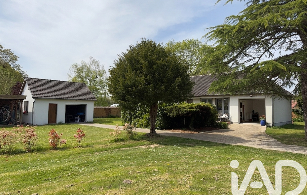 iad France - Julien Riviere vous propose: Découvrez cette agréable maison de plain-pied située dans un environnement paisible et privilégié, entièrement clos de murs et sans vis-à-vis, à Sylvains-les-Moulins.