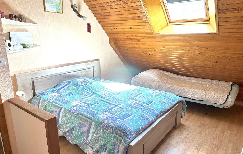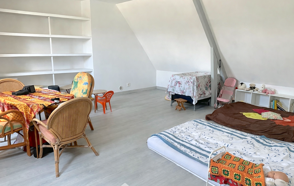 À l'étage, un palier dessert deux chambres supplémentaires, une vaste pièce aujourd'hui aménagée en salle de jeux, une salle d'eau ainsi qu'un second WC.