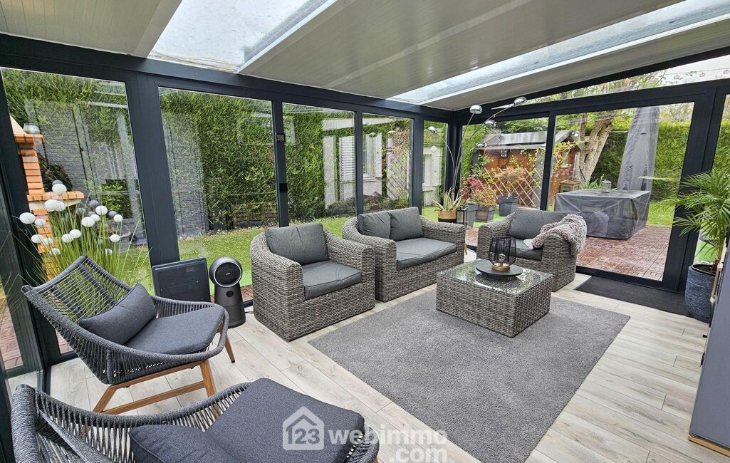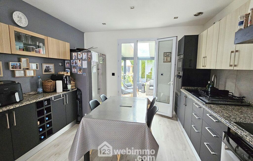 Dès le rez-de-chaussée, vous découvrirez un séjour / salle à manger lumineux, ouvert sur une cuisine entièrement équipée, formant un bel espace de vie convivial et fonctionnel. Une véranda prolonge cet ensemble et invite à profiter de la lumière en toute saison.