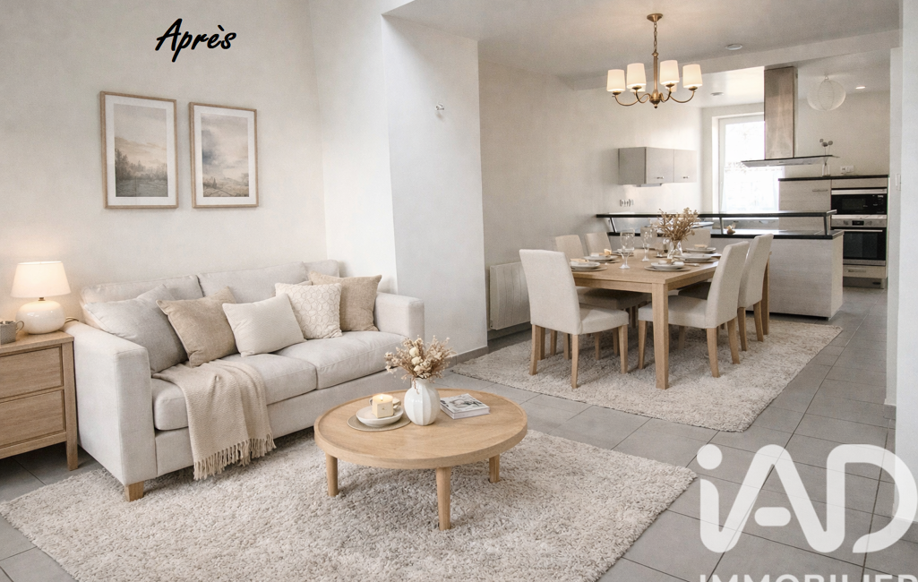 Dès l’entrée, le rez-de-chaussée surélevé dévoile une belle pièce de vie traversante, baignée de lumière naturelle, où la cuisine aménagée et équipée s’ouvre harmonieusement sur le séjour, offrant un espace convivial et chaleureux.