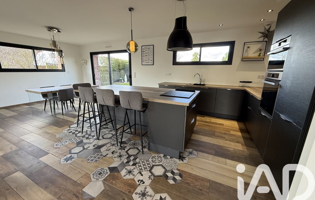 iad France - Frédérique Duraisin vous propose: Sublime Maison Moderne de 130m² avec Jardin et garage à Quiéry-la-Motte. Cette maison individuelle construite en 2019 par des artisans offre des prestations modernes et de qualité. Toujours sous garantie décennale, elle vous séduira par ses volumes généreux, sa luminosité et son environnement agréable.