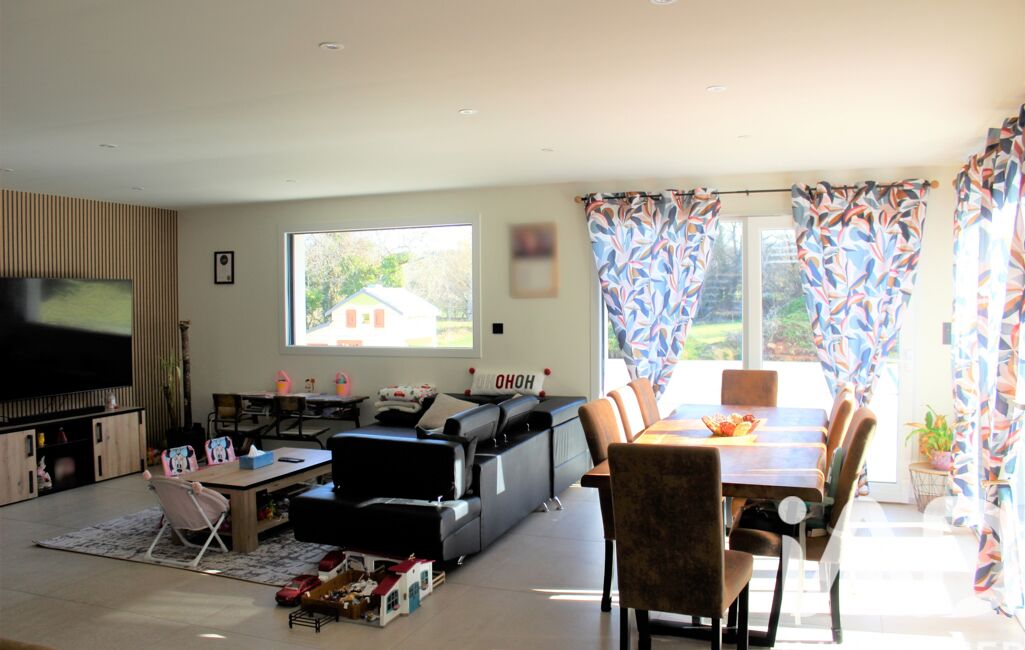 De plain-pied, elle développe 149 m² habitables parfaitement pensés. Dès l’entrée, un espace bureau vous accueille avant de s’ouvrir sur une belle pièce de vie baignée de lumière. Côté nuit, quatre chambres offrent à chacun son espace, accompagnées d’une grande salle de bains avec douche et baignoire, et d’un WC indépendant.