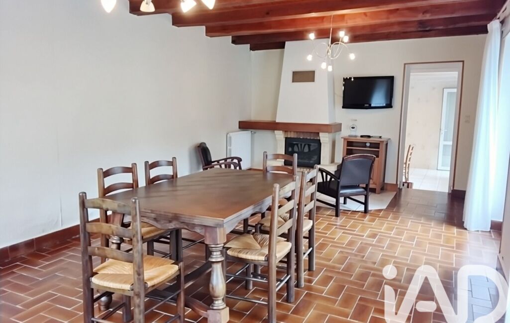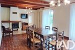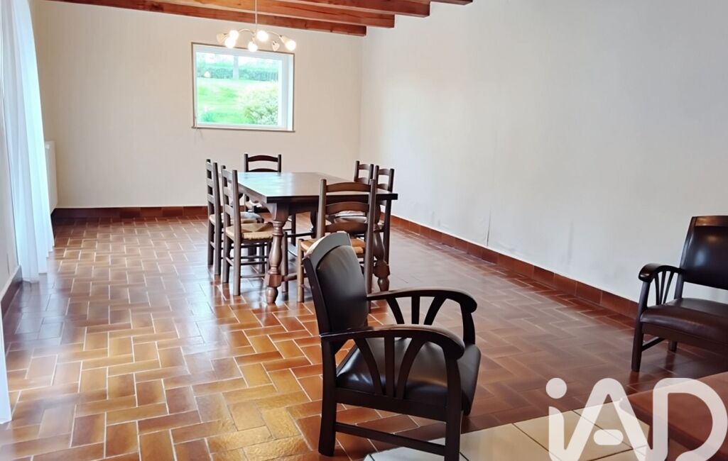 Dans le prolongement, la longère attenante accueille un salon chaleureux avec cheminée et salle à manger, formant un bel espace de vie d’environ 30 m².