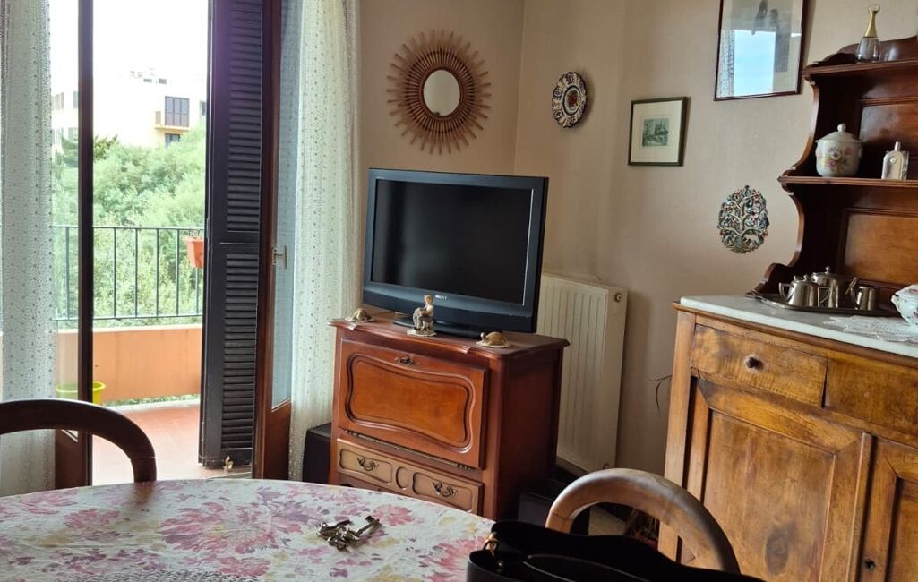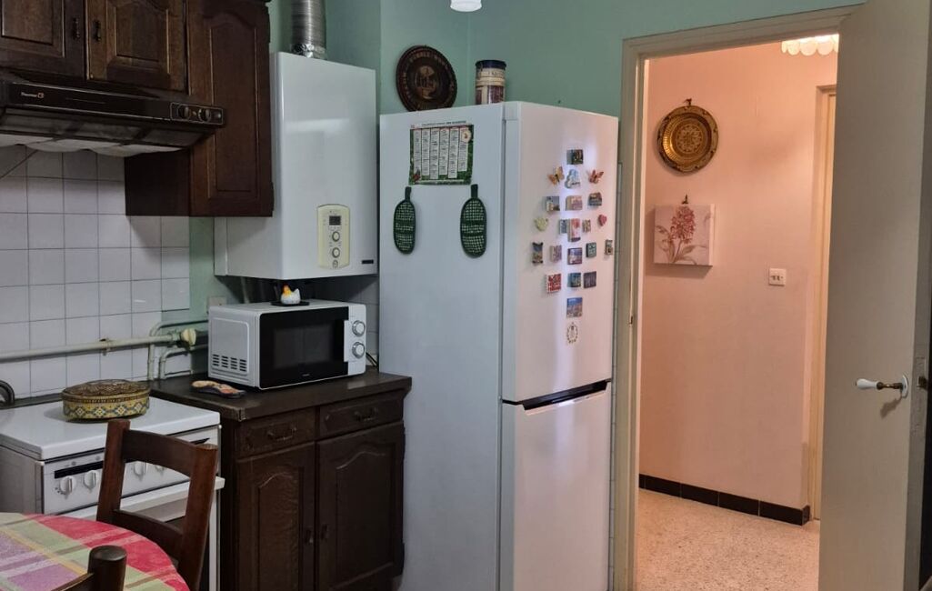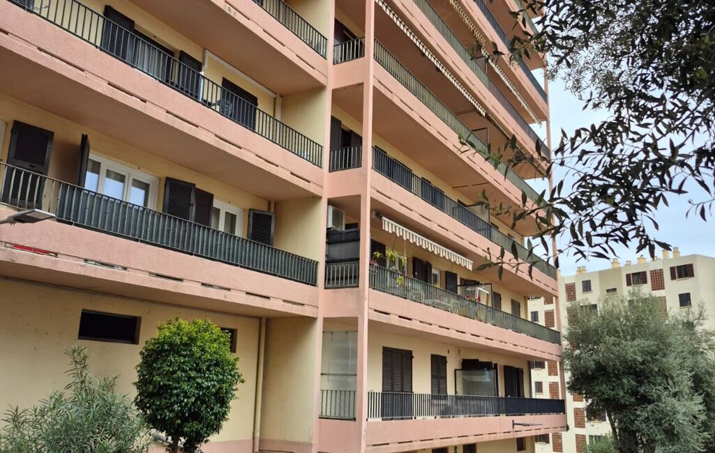 iad France - Irène Valentin vous propose: Irène VALENTIN vous propose à 5 minutes du PORT DE TOGA et de la PLACE SAINT NICOLAS à BASTIA en Haute Corse un grand appartement de 70m² (85m² surface au sol) dans une résidence construite en 1970. L’appartement de 4 pièces est situé au 3ème étage d’un immeuble de 7 niveaux avec ascenseur. Il est composé d’une entrée qui dessert un séjour, une cuisine semi équipée : placards, évier, hotte, chaudière à gaz, un cellier/ loggia. Le séjour donne sur une terrasse carrelée de 9.5m² orientée au Sud Est avec une vue dégagée sur la résidence et au loin, sur la mer.
