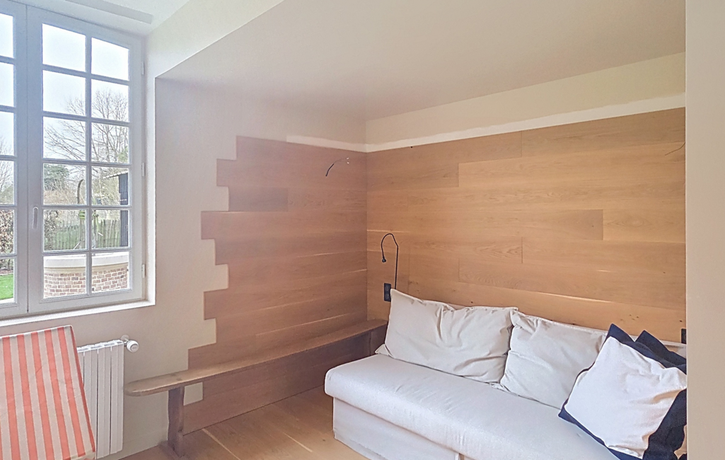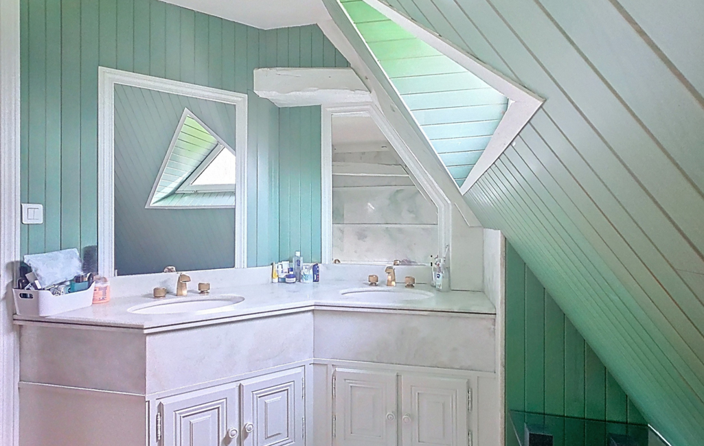 L'étage supérieur abrite quatre chambres supplémentaires, dont deux en enfilade, une salle de bain et un WC indépendant.