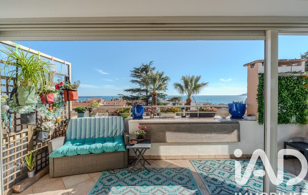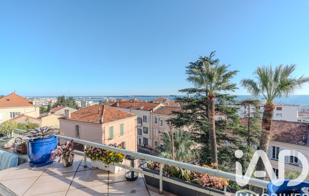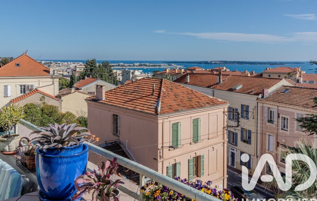 iad France - Angéla Gest vous propose: RARE. VUE MER PANORAMIQUE EXCEPTIONNELLE. JOLI 2 PIÈCES DE 42 m2 + 7 M2 DE TERRASSE PLEIN SUD - SECTEUR STANISLAS-SUQUET. Calme. Sans vis-à-vis. Commerces, Plages, transports en commun, Suquet, Forville, à pied ! Idéal résidence principale, secondaire ou investissement locatif. Bien rénové, au dernier étage d'une maison de ville. DESCRIPTIF : une Entrée, une cuisine récente ouverte sur une pièce de vie lumineuse et sa terrasse avec vue imprenable du Palm Beach jusqu'à la Baie de Théoule-sur-Mer. Vue sur la mer, les îles de Lérins, le Port Canto, le Suquet et le château de Vallombrosa , une chambre astucieuse avec douche italienne et toilettes, offre une vue dégagée sur la Croix des Gardes. DOUBLE VITRAGE. CLIMATISATION. FAIBLES CHARGES. GARAGE POSSIBLE EN SUS + 40000€.