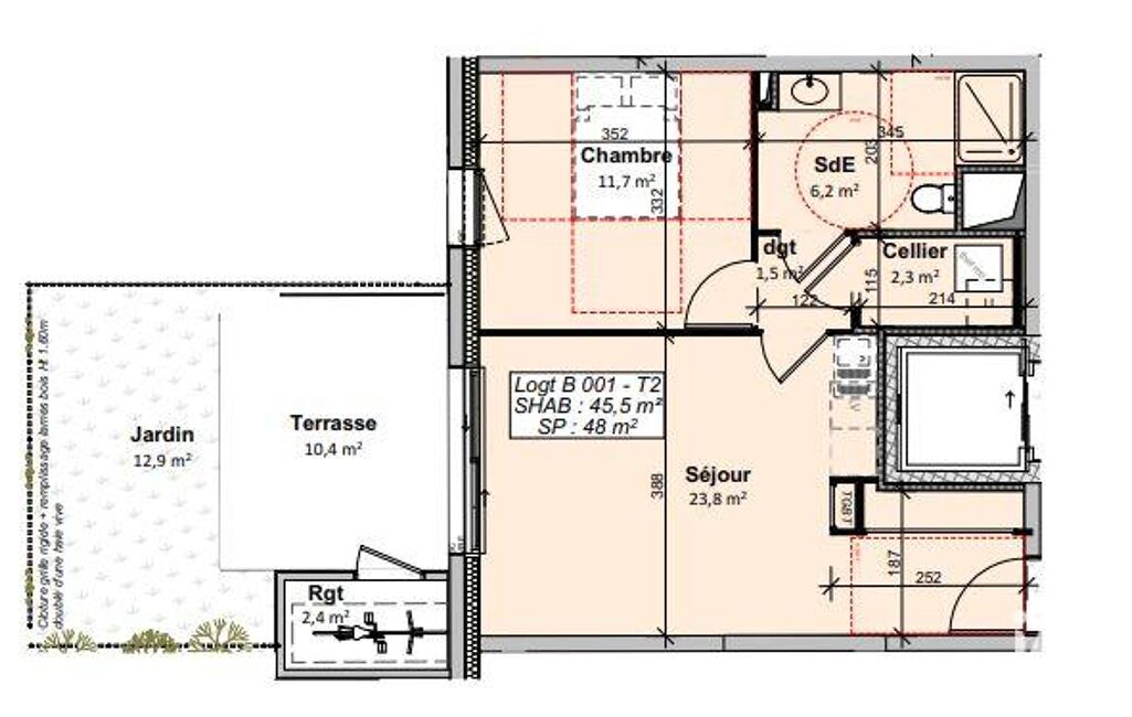 - Surface habitable : 46 m²