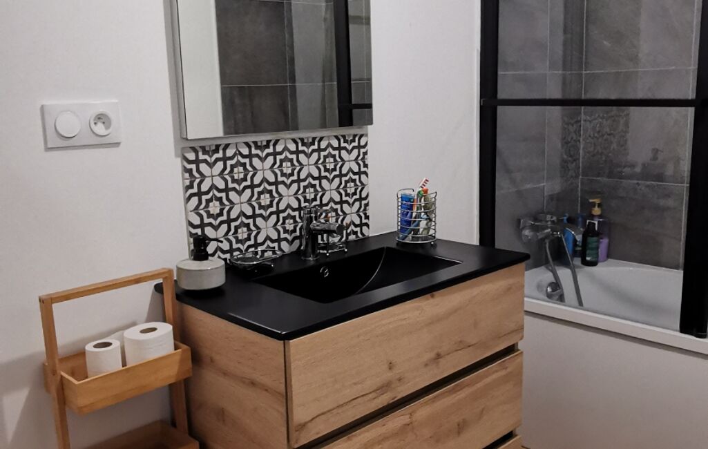 iad France - Amélie Laluc vous propose: En exclusivité proche de toutes commodités, maison de ville mitoyenne avec quelques travaux à terminer sur deux niveaux comprenant : Une vaste entrée pouvant être réaménagée, une cuisine entièrement neuve, aménagée et équipée avec baie vitrée donnant sur une cour intérieure fermée sans vis à vis. Le 1er étage dessert un WC séparé, un salon/séjour ainsi qu'une suite parentale avec douche et lavabo. Le second étage quant à lui propose 2 grandes chambres, une salle de bains entièrement neuve avec une baignoire et un WC. Une 3ème pièce donnant accès à une mezzanine pouvant faire office de bureau/dressing ou autre selon vos envies.