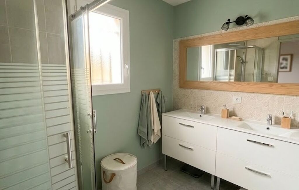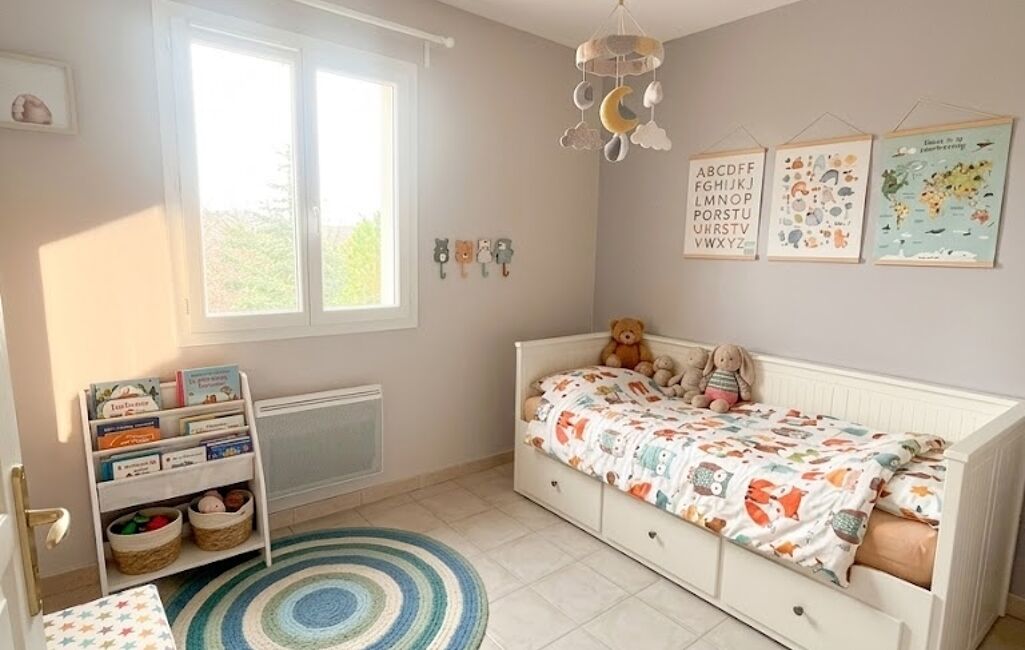 À l’étage, l’espace nuit se compose de trois belles chambres ainsi que d’une salle d’eau fonctionnelle, parfaitement agencée pour une vie de famille confortable.