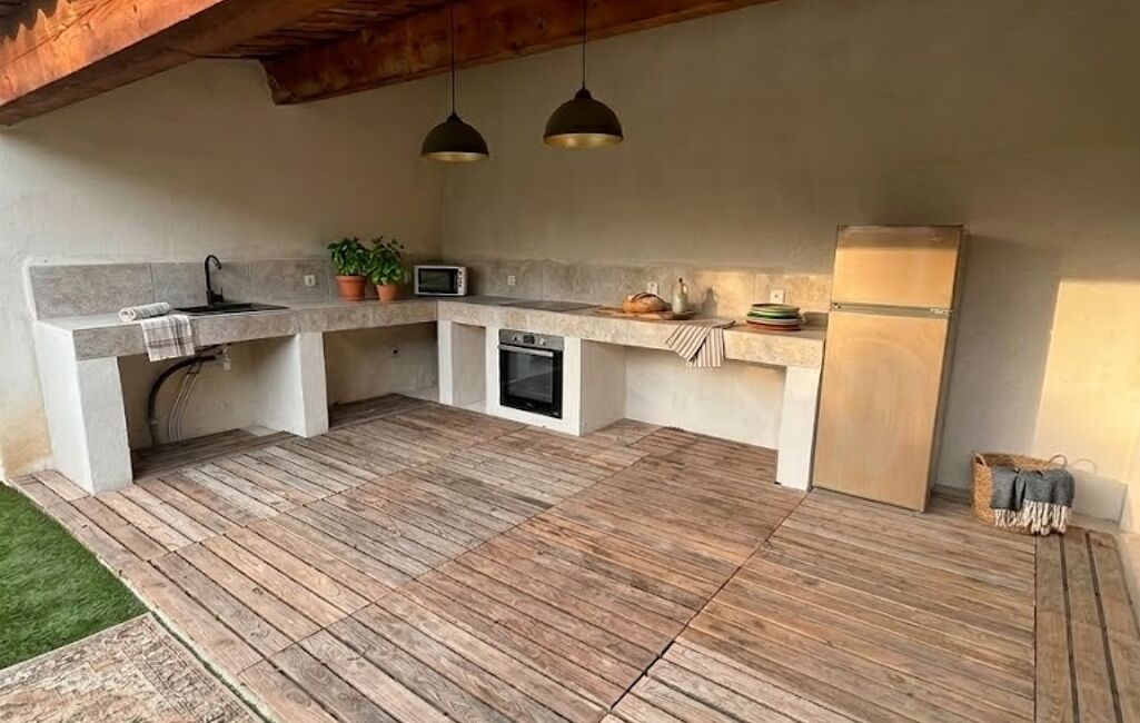 À l’extérieur, vous découvrirez un véritable havre de paix avec une piscine à la forme originale, une agréable terrasse et une cuisine d’été, parfaites pour vos moments de détente et de réception.