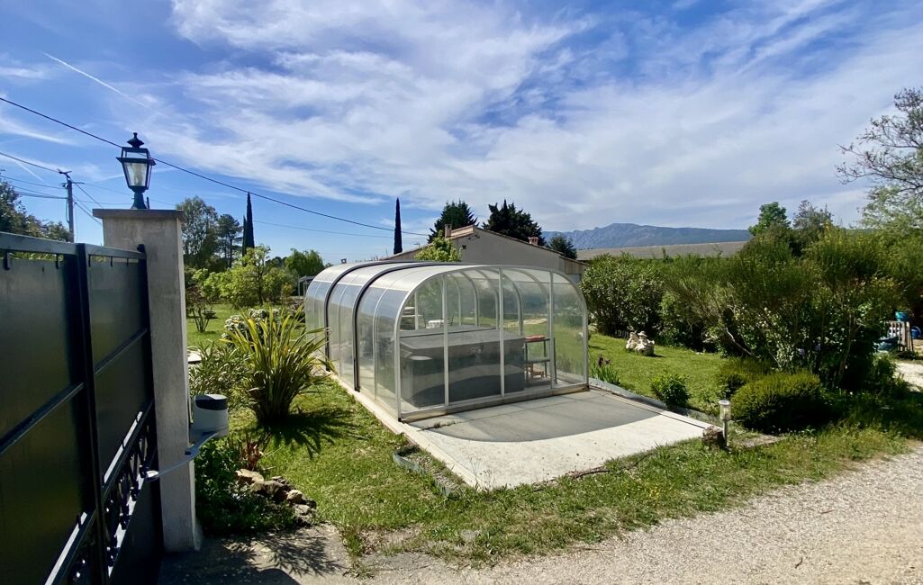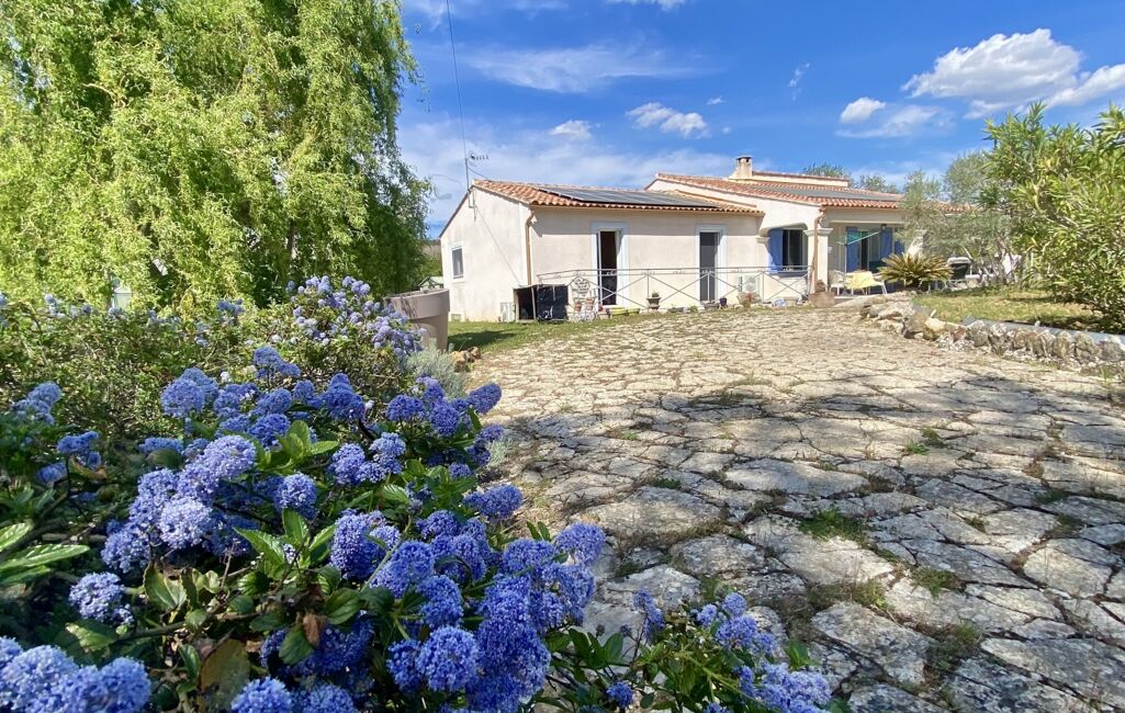 iad France - Nicolas Royer vous propose: Idéalement situé au pied de la Sainte Victoire sur les hauteurs du joli village de Pourrières, venez découvrir cette belle maison de plain-pied de 130 m² habitable sur un terrain arboré et clos de 2745 m².