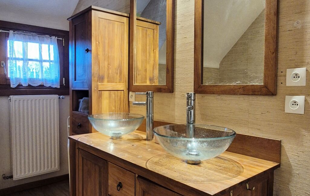 A l'étage, un grand palier avec rangements permet d'accéder à deux belles chambres supplémentaires de 20m² chacune, ainsi qu'à une salle de bains avec W.C.