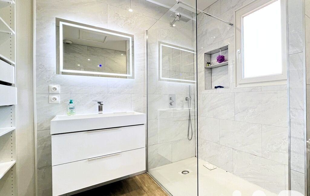 L’étage accueille trois chambres avec rangements et une salle d’eau contemporaine avec douche à l’italienne.