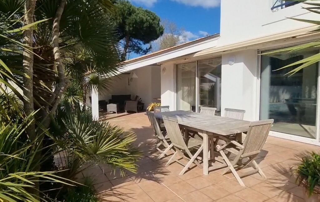 La terrasse, équipée d’un double store banne, prolonge les espaces de vie et devient le lieu idéal pour les repas d’été.
