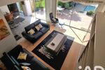 Ces trois espaces, largement ouverts sur la terrasse, le parc paysager et la piscine, offrent une vue apaisante sur le jardin et créent un cadre idéal pour partager de précieux moments en famille ou entre amis.