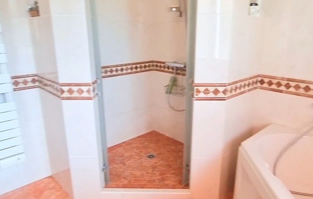 une salle de bains avec baignoire et douche