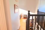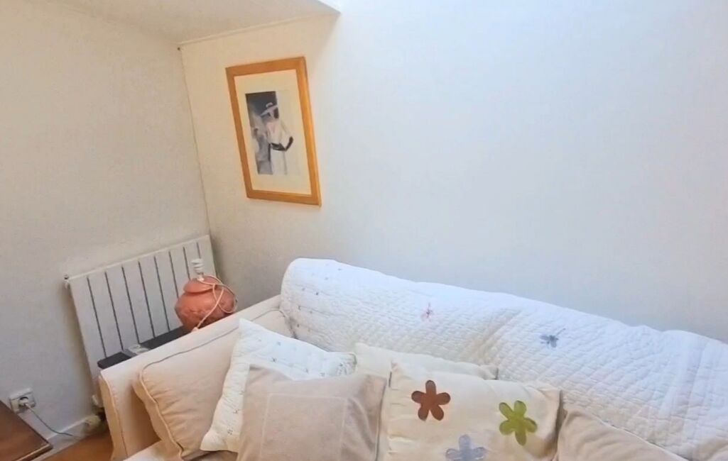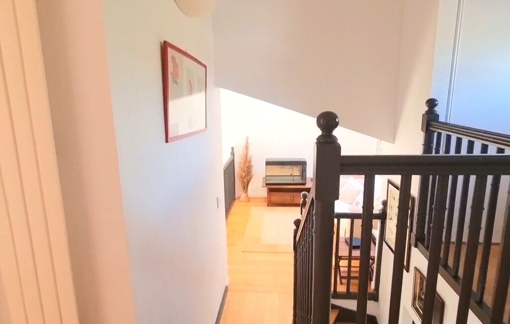 À l’étage, un escalier élégant mène à une mezzanine pleine de charme qui surplombe le salon, avant de desservir deux grandes chambres lumineuses avec vue sur le jardin, une salle d’eau et des WC séparés.