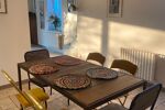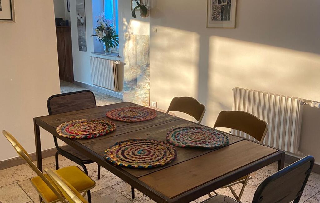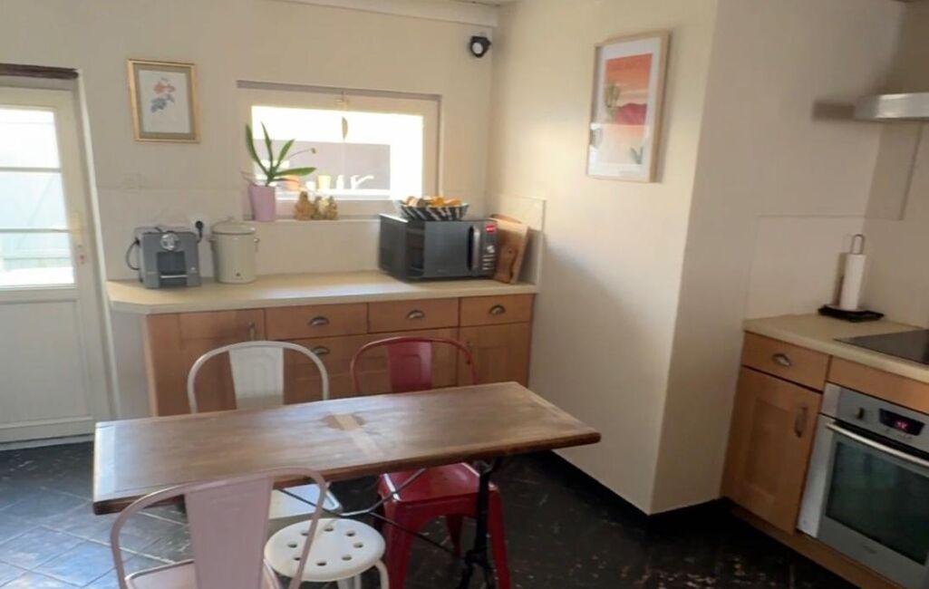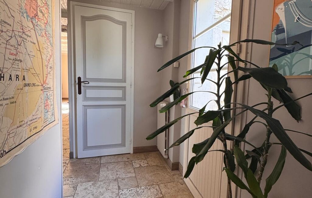Dès l’entrée, accessible par un agréable patio avec une cuisine d'été, le charme opère : vous découvrirez une entrée menant à un lumineux salon-séjour agrémenté d’un poêle à bois, idéal pour des moments chaleureux. La cuisine dinatoire, aménagée et équipée, invite à la convivialité.