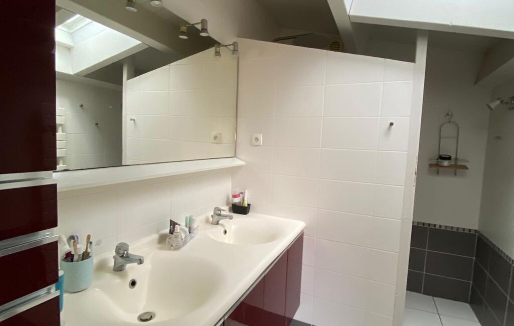 Le rez-de-chaussée propose également une salle de bain avec baignoire et douche ainsi qu’une buanderie fonctionnelle, un wc.