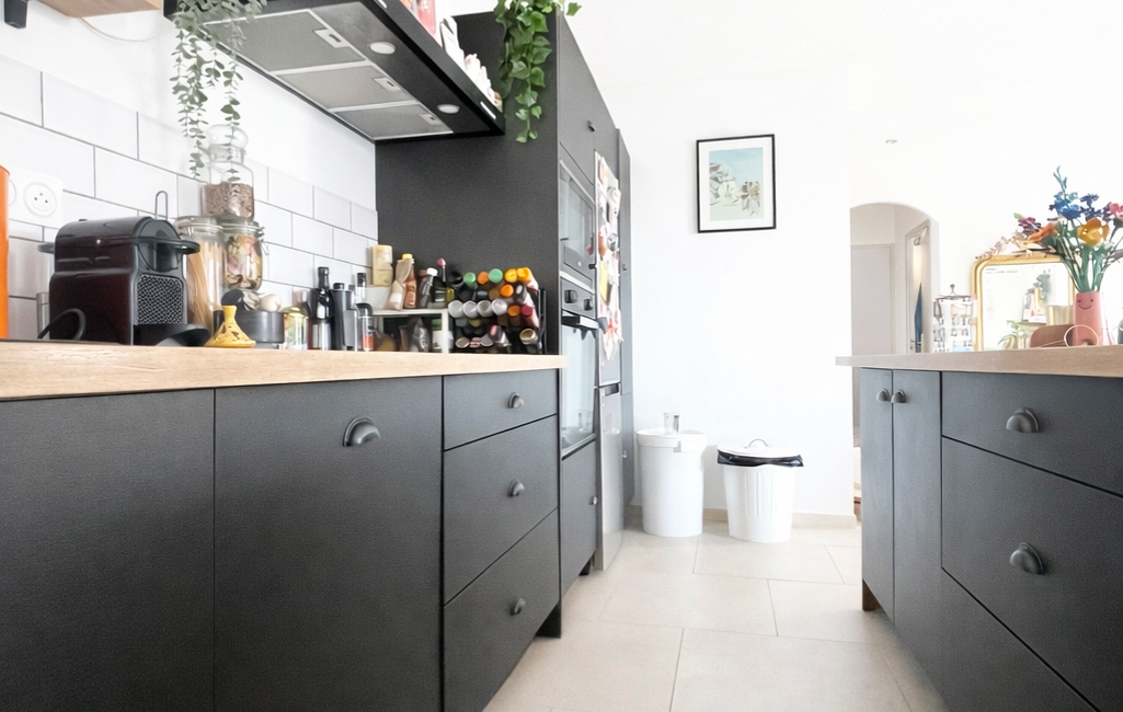 Vous découvrirez une agréable pièce de vie lumineuse avec une cuisine entièrement équipée Cuisinella doté d’un superbe îlot central — aucun travaux à prévoir.