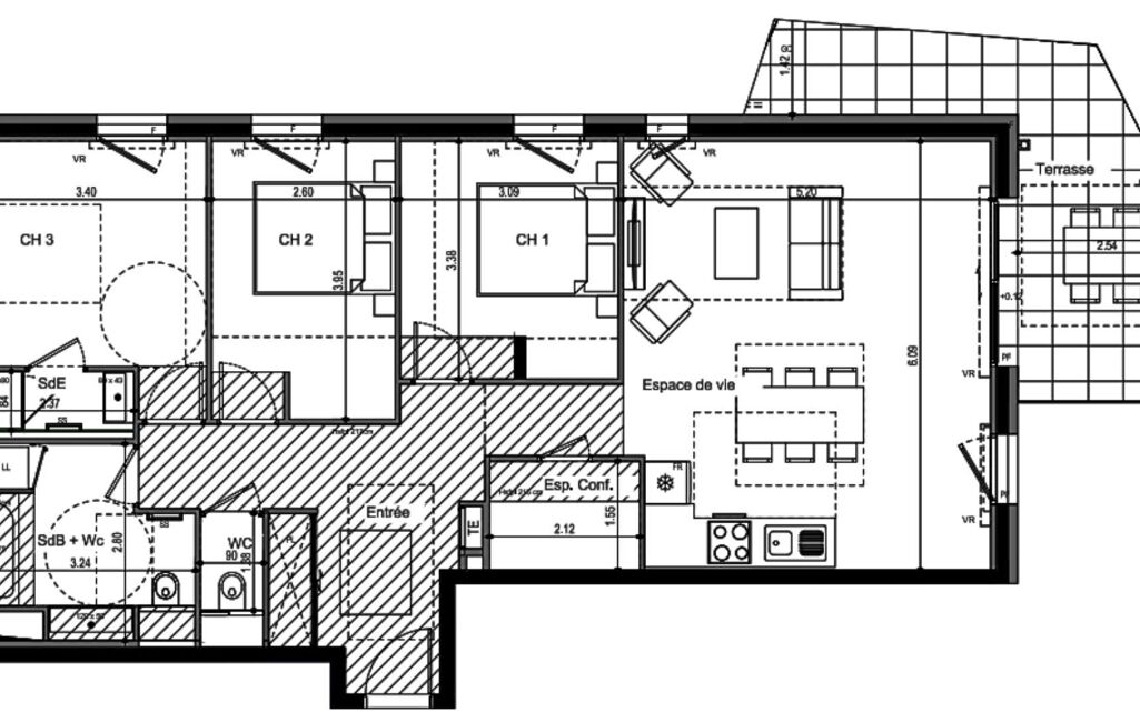Situé au 3 ème étage, cet appartement T4 de 92 m² environ habitables se prolonge par une terrasse de 12 m² environ.