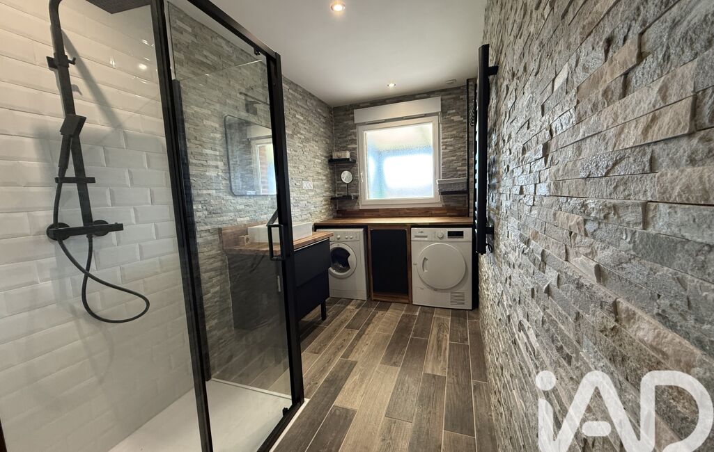 Édifiée sur un sous-sol complet d’environ 120 m², elle offre de nombreux espaces fonctionnels : un garage pouvant accueillir deux véhicules, un espace cellier, ainsi qu’une chaufferie/buanderie, idéal pour le rangement.