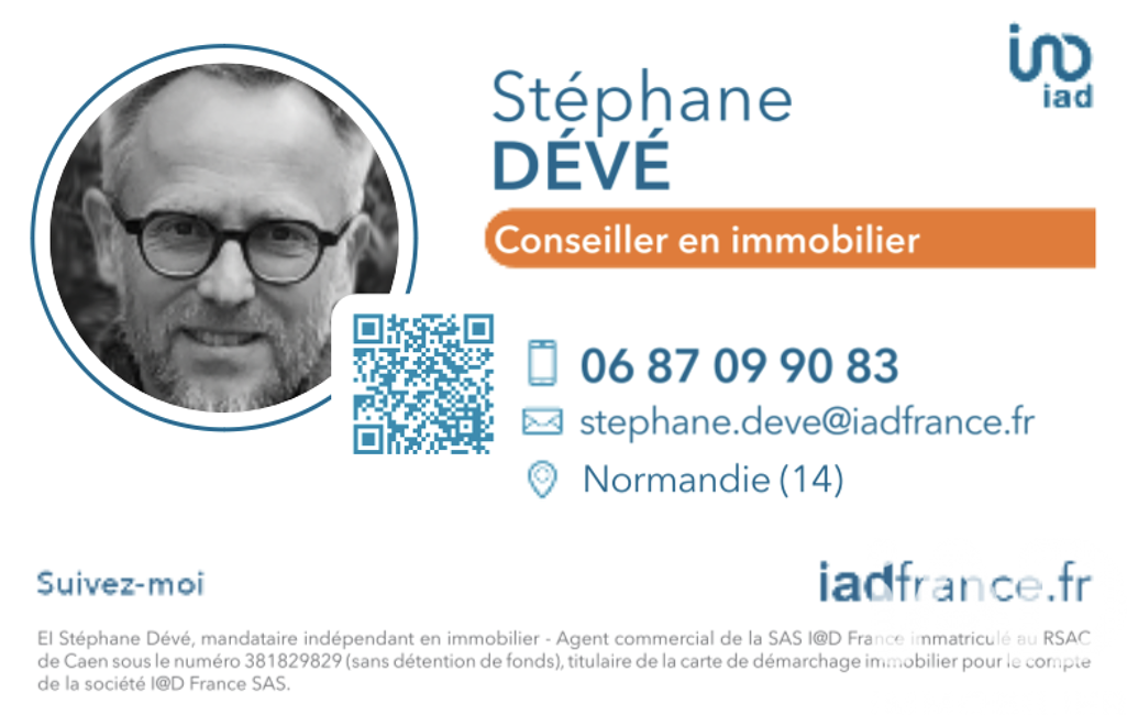 La présente annonce immobilière a été rédigée sous la responsabilité éditoriale de M Stéphane Dévé mandataire indépendant en immobilier (sans détention de fonds), agent commercial de la SAS I@D France immatriculé au RSAC de CAEN sous le numéro 381829829, titulaire de la carte de démarchage immobilier pour le compte de la société I@D France SAS.