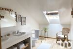 Au premier demi-niveau, vous trouverez deux chambres spacieuses, une salle de bains double vasque , ainsi qu'un WC indépendant. Un accès au grenier mansardé de 49m2 au sol reste aménageable selon vos envies.