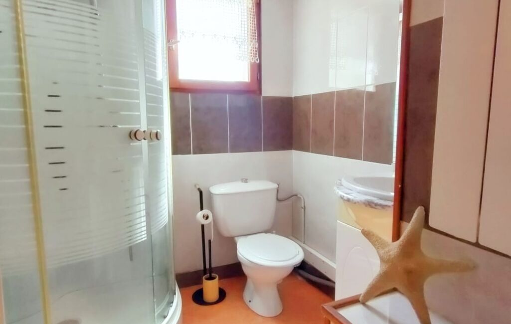 La seconde habitation, d'une superficie d'environ 60m2 sur deux niveaux, se compose au rez-de-chaussée d'une kitchenette, d'une salle d'eau, d'une pièce à vivre de 25m2 avec cheminée et accès terrasse, d'une véranda. A l'étage, se trouve le coin nuit avec deux chambres, dont une possèdant une terrasse privative.