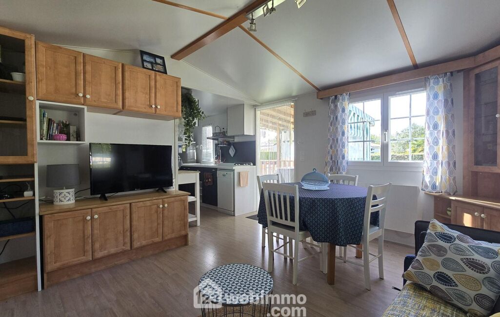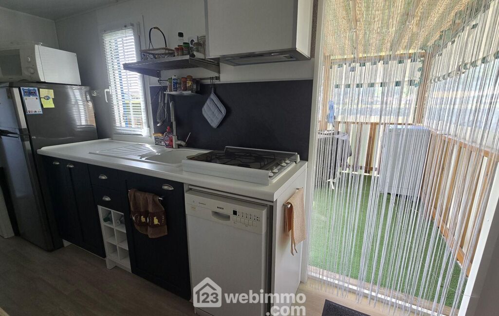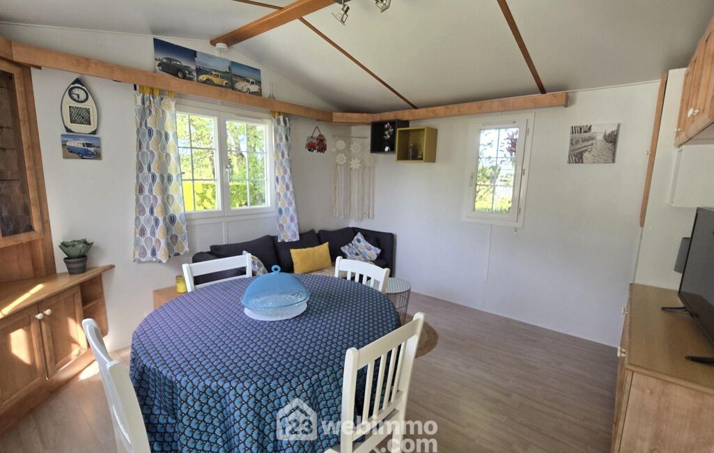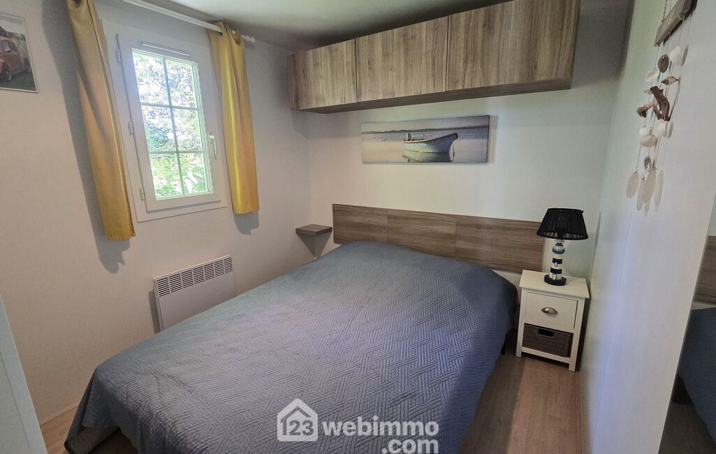 Vous pourrez vous garer dans votre jardin privé qui entoure votre future résidence de loisir. Depuis votre vaste terrasse bois vous pourrez au choix vous détendre ou manger sous le carport. L'aménagement judicieux des 32m², vous permettra de bénéficier d'un bel espace séjour salon traversant, d'une cuisine aménagée et équipée, de deux chambres avec placards, d'une salle de douche et d'un toilette séparé. En extérieur un cabanon de jardin et un bel espace pour garer votre voiture sur votre parcelle privée.