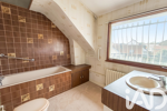 A l'étage : trois chambres dont une avec accès à un agréable balcon-terrasse, une salle de bains avec wc complète ce niveau.