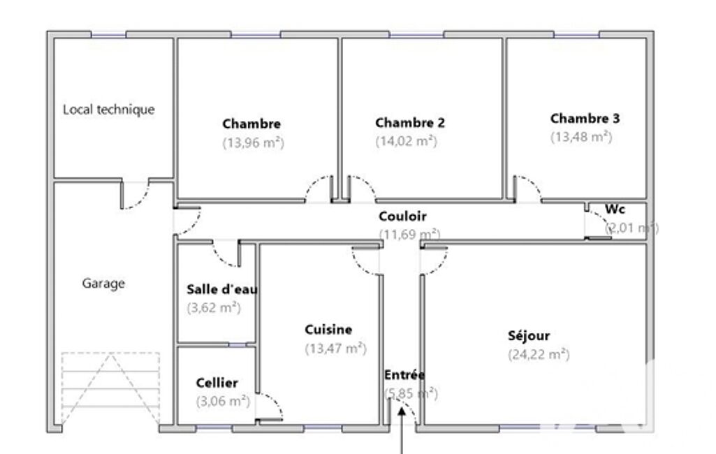 iad France - Aurélie Montazaud vous propose: A deux pas du centre ville, ensemble immobilier de deux maisons similaires et mitoyennes de 105m² de plain pied comprenant : entrée, séjour, cuisine équipée, cellier, salle d'eau, 3 chambres, garage attenant 18m² et chaufferie 9m².