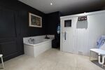 •Vaste salle de bain avec douche à l’italienne, baignoire, double vasque et un sauna.