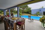 •Grande cuisine entièrement aménagée et équipée avec un ilot central convivial, vue piscine également