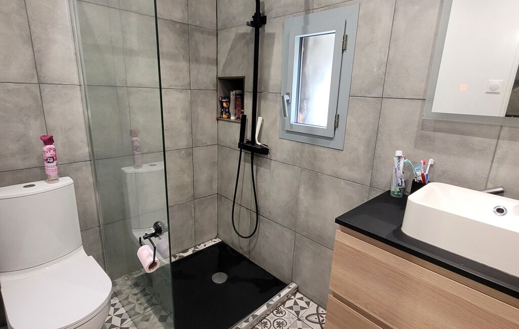 Cette maison se compose au rez-de-chaussée, d'une cuisine équipée ouverte sur le séjour, d'une chambre spacieuse et d’une salle d’eau avec WC.