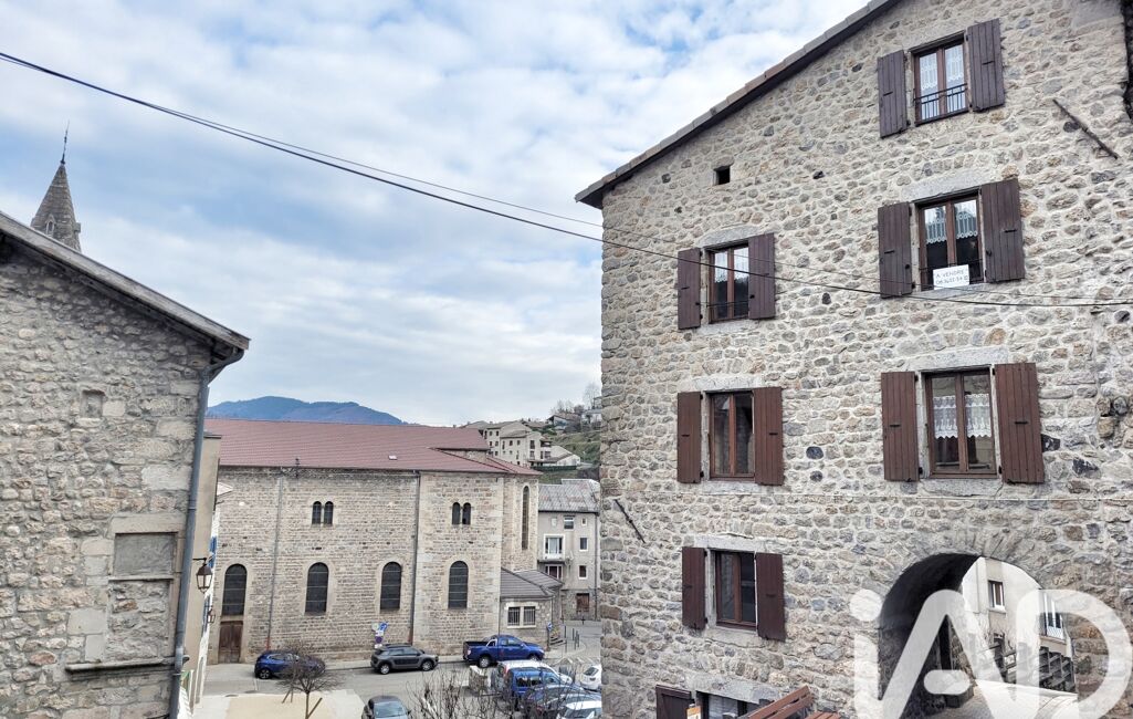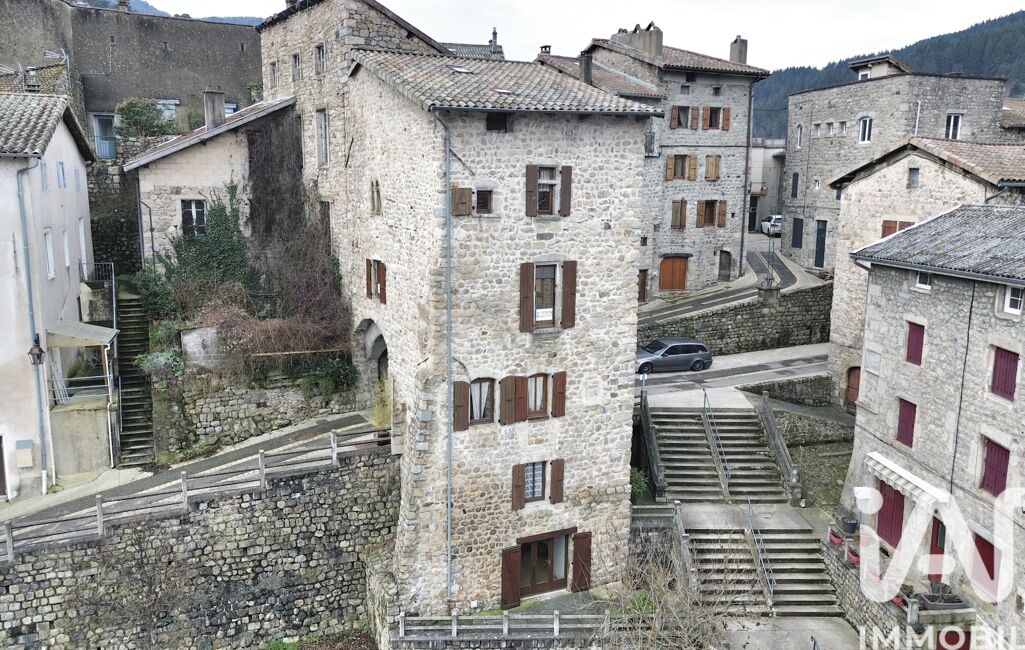 iad France - Damien Gilles vous propose: Aux portes de la vieille ville historique, découvrez cette authentique maison en pierres du 18ème siècle au Cheylard d’environ 116 m², bénéficiant d’une vue dégagée sur la place de la Halle et son église.