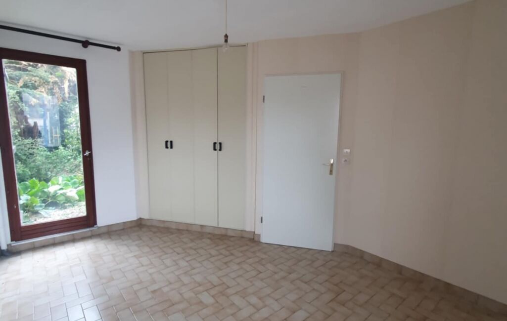 Au rez-de-chausée, vous trouverez une piéce de 12 m2 pouvant servir de bureau ou d'une chambre avec un accés vers l'extérieur, un grand garage et un WC