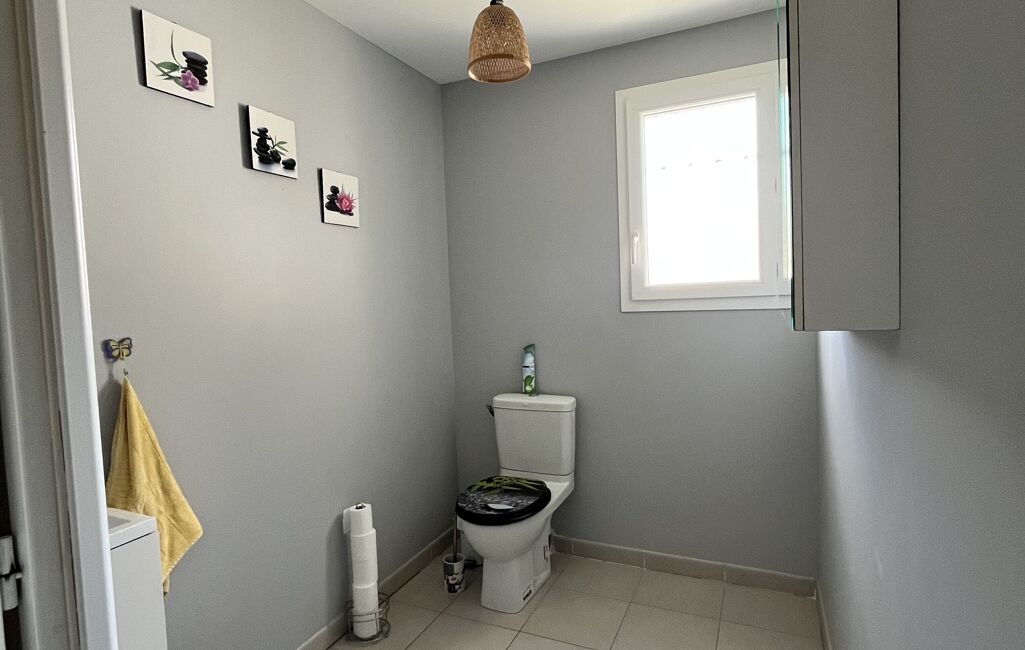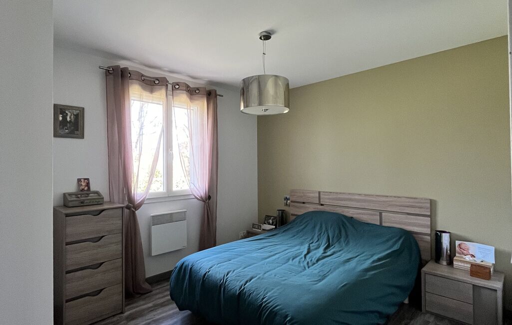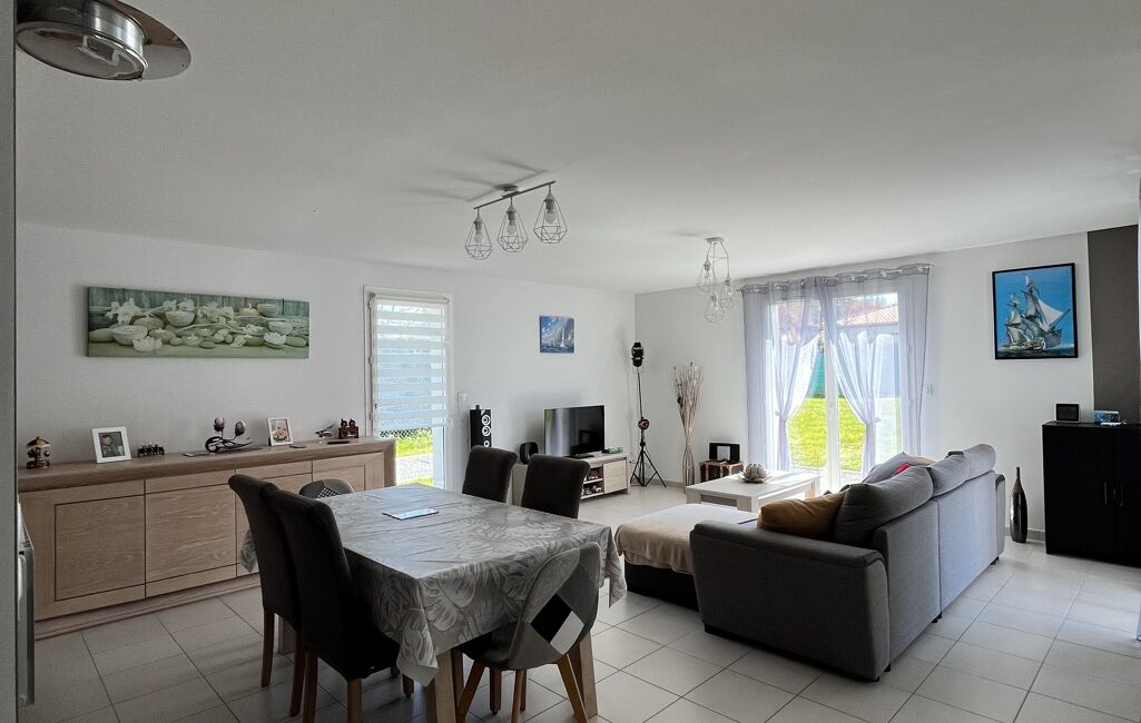Cette très belle maison de plain-pied construite en 2012, d’environ 94 m² habitables. Lumineuse, elle se compose d’un hall d’entrée, d’une cuisine équipée ouverte sur une pièce de vie, de 3 chambres avec placards, d’une salle de bain, d’un WC indépendant ainsi que d’un cellier.