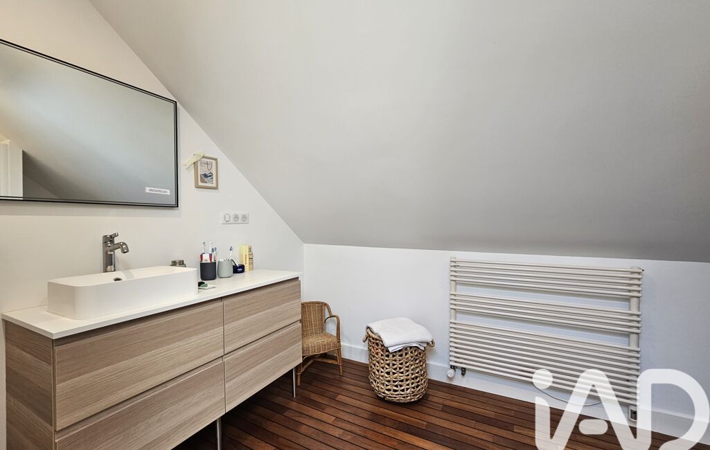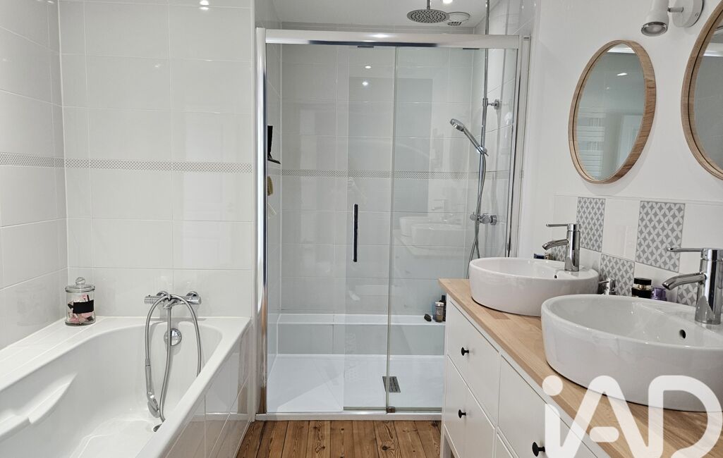 Le bel escalier vous conduit ensuite au premier étage où vous découvrirez une chambre de près de 17m2 avec son placard de rangements, une seconde chambre de 20m2 avec sa jolie cheminée d’époque et ses rangements sur mesure neufs, un couloir avec des rangements, une salle de bains avec baignoire, douche, double vasque et rangements, et des WC indépendants !