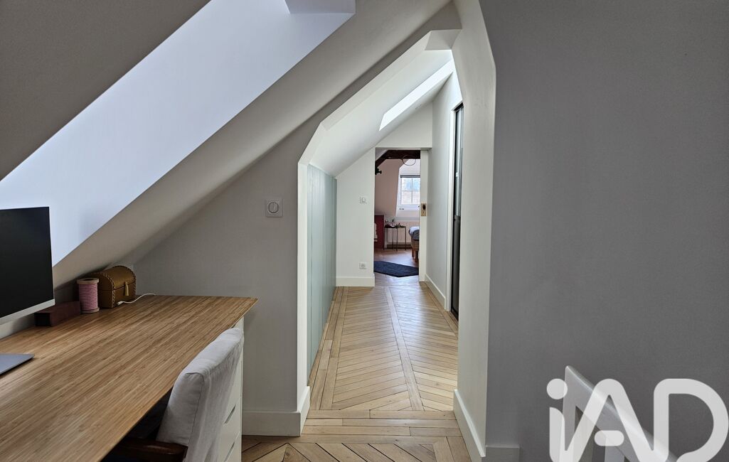 Le dernier étage offre 2 chambres supplémentaires (de 14 et 19m2 au sol) avec poutres apparentes, une salle d’eau avec WC, et de nouveau des rangements sur mesure dans le couloir. Vous apprécierez le joli parquet massif présent dans l’ensemble de la maison !