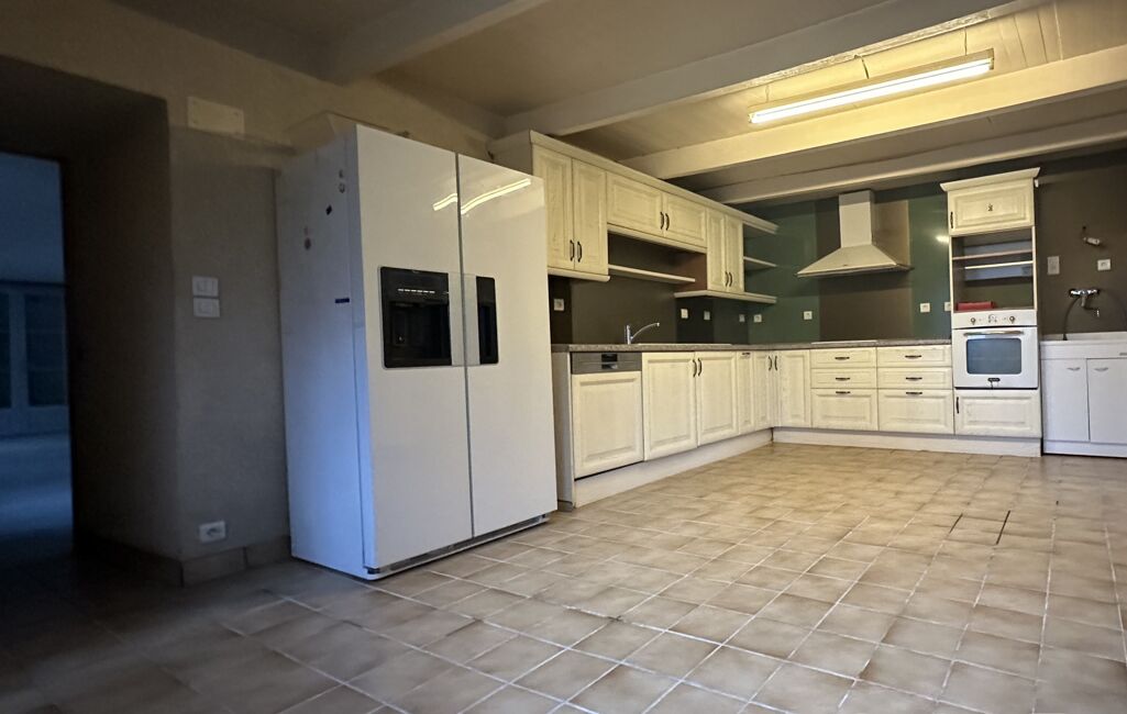 Le bien comprend, au rez-de-chaussée, une grande cuisine, un beau salon-séjour d’environ 35 m² avec une cheminée en pierre, une salle d’eau, un WC, une buanderie ainsi qu’une cave.