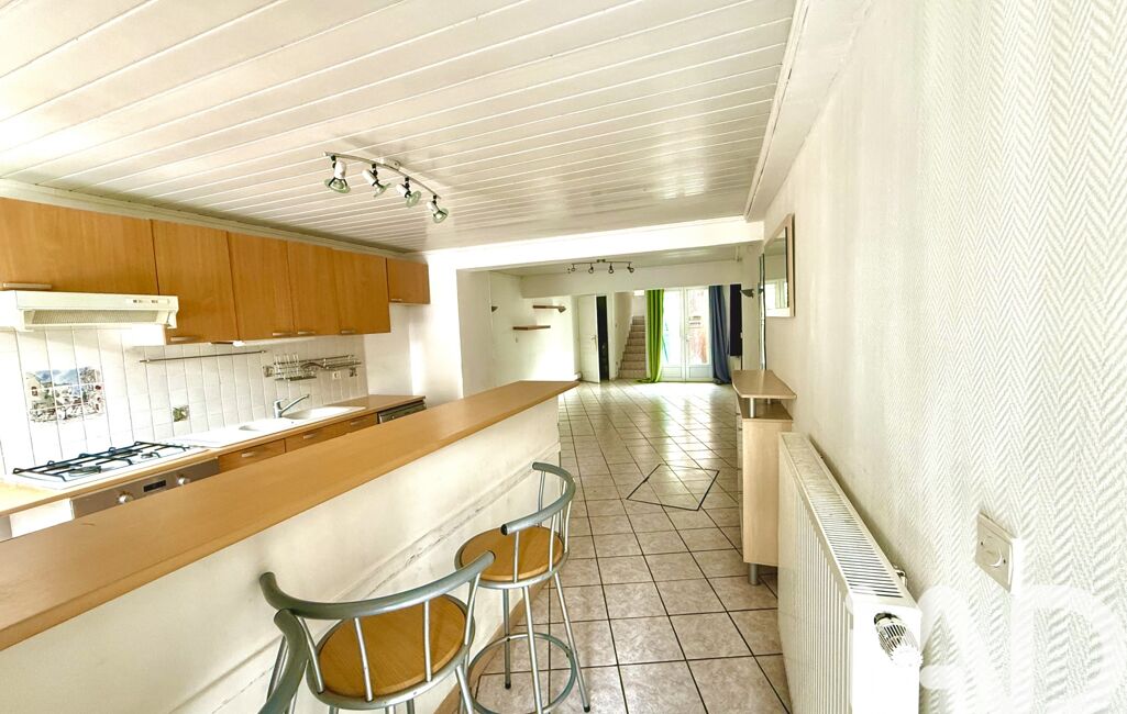 La cuisine ouverte sur le séjour propose un agencement convivial, parfait pour partager des moments en famille ou entre amis. La salle de bain et les WC séparés ajoutent une touche de commodité à ce bien.
