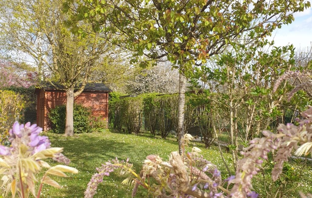 Parcelle entièrement clôturée, avec place de parking et cabanon de jardin.