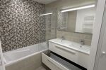-EQUIPEMENTS SANITAIRES : salle de bain avec Baignoire de 170x70cm+ ensemble meuble vasque, miroir et réglette lumineuse.