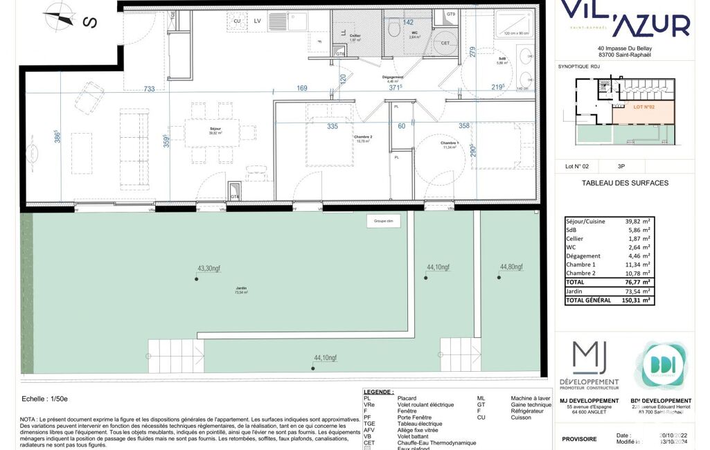D’une surface de 76 m² environ, cet appartement offre un séjour généreux de 40 m² environ ouvert sur un jardin agréable de 74 m² environ, ainsi que deux chambres.