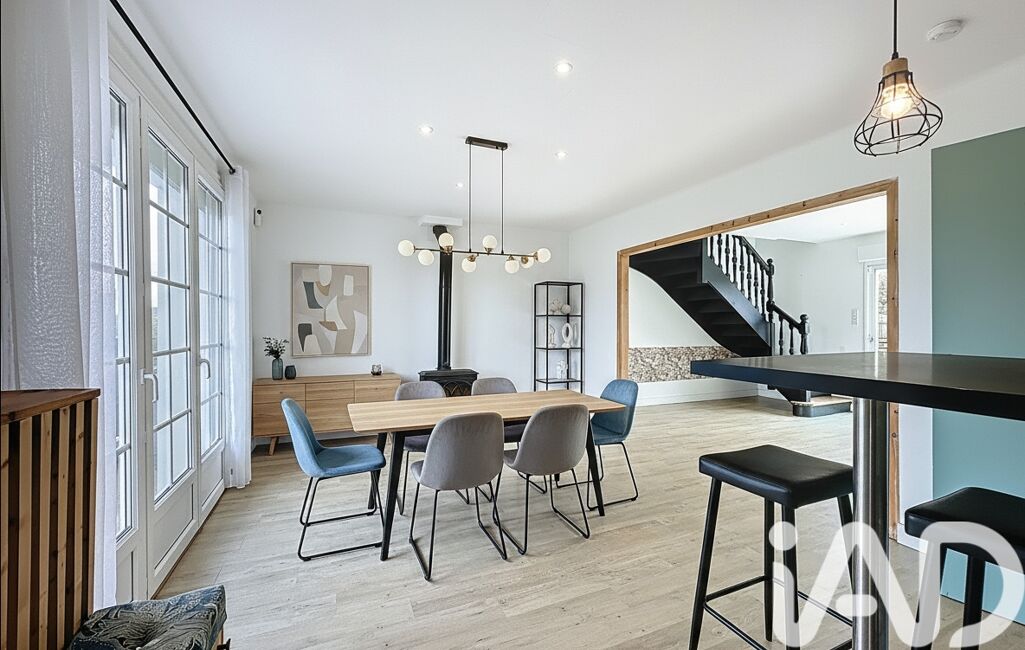 Une salle à manger conviviale avec poêle à bois,