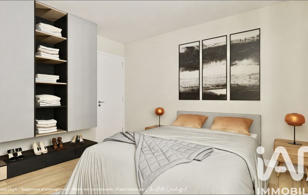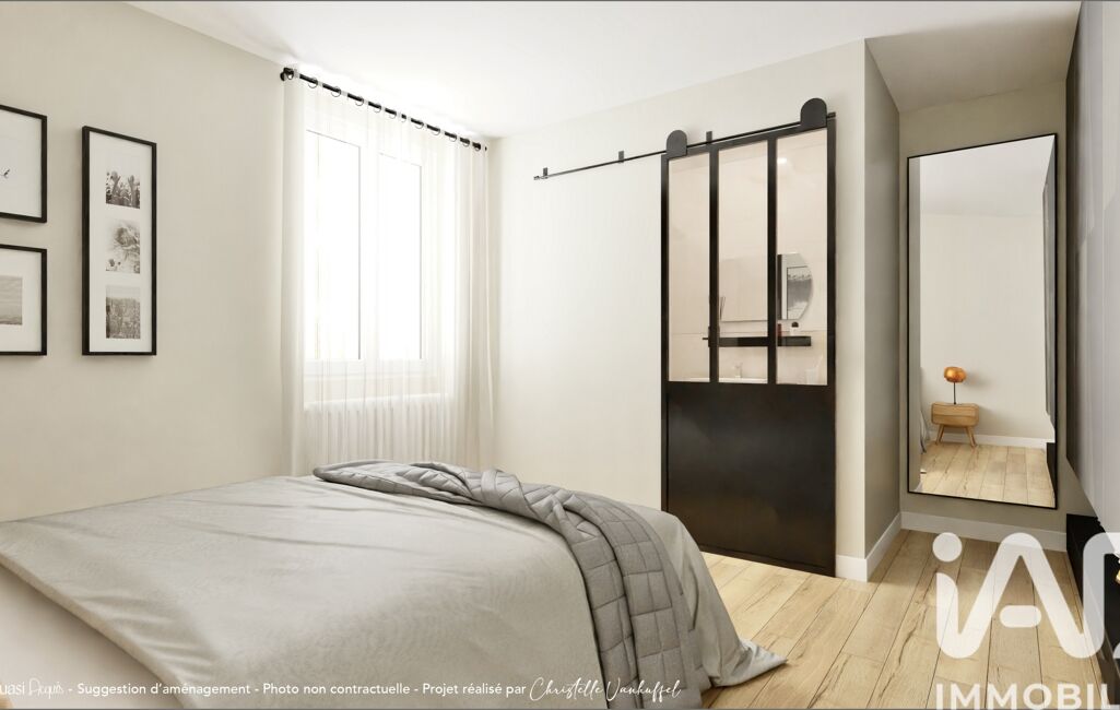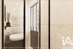 Un projet de réaménagement du plateau a été imaginé pour faciliter la projection : il propose notamment de transformer la cuisine actuelle en suite parentale et d’intégrer la chambre attenante au séjour afin de créer un vaste espace cuisine et d’agrandir le coin jour. Une vision cohérente, pensée comme une source d’inspiration, illustrée par des visuels 3D.