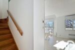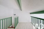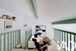 À l’étage, l’appartement propose une chambre, une salle d’eau avec WC et une mezzanine pouvant servir de bureau, d’espace détente ou de couchage supplémentaire.