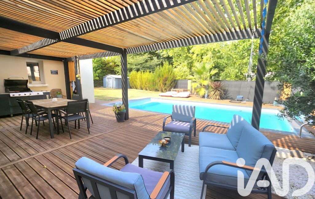 iad France - Lisa Lamy vous propose: Découvrez cette superbe maison de plain-pied de 150m² construite sur un terrain clos et soigneusement arboré de 1349 m² offrant un cadre de vie idyllique, alliant confort absolu, intimité, calme et design contemporain.